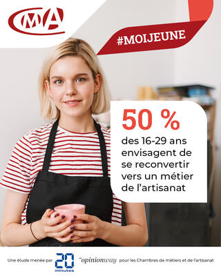 1 jeune sur 2 se dit prêt à se reconvertir vers un métier manuel dans la dernière enquête #MoiJeune de 20 Minutes / Opinionway pour les CMA (Janvier 2025)